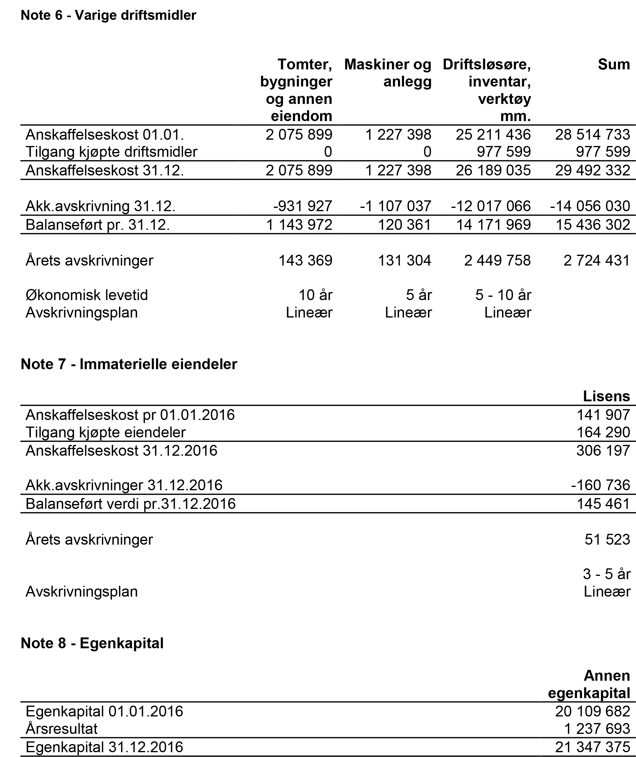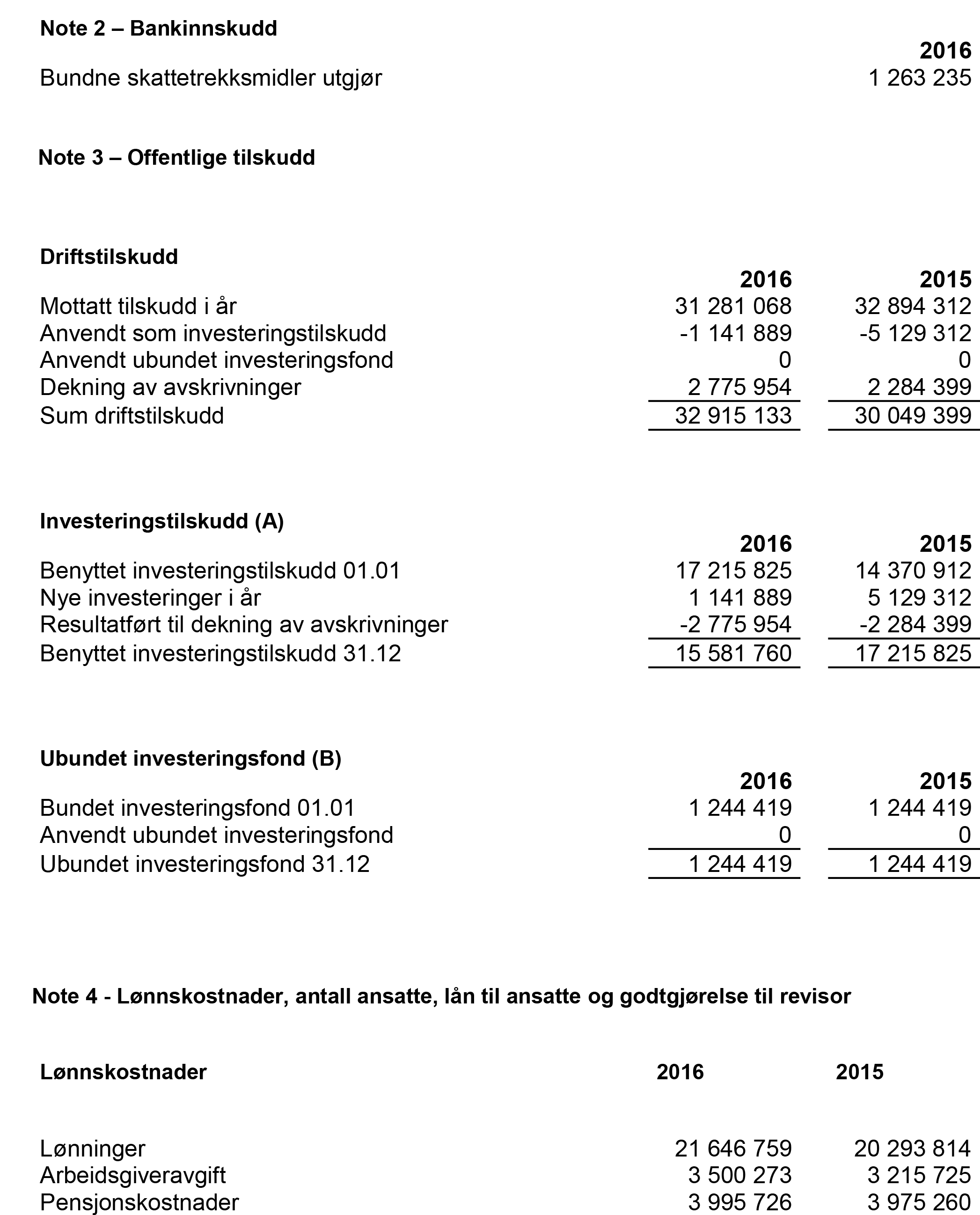 Noter til regnskapet